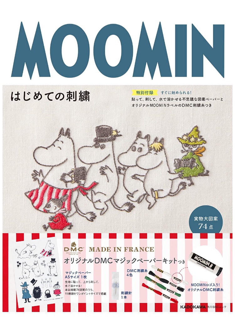 MOOMINはじめての刺繍 【特別付録】すぐに始められる!貼って、刺して、水で溶かせる不思議な図案ペーパーとオリジナルMOOMINラベルのDMC刺繍糸つき (角川SSCムック)