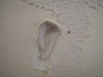 すごいですよ。壁穴。石膏ボードまでいってる。