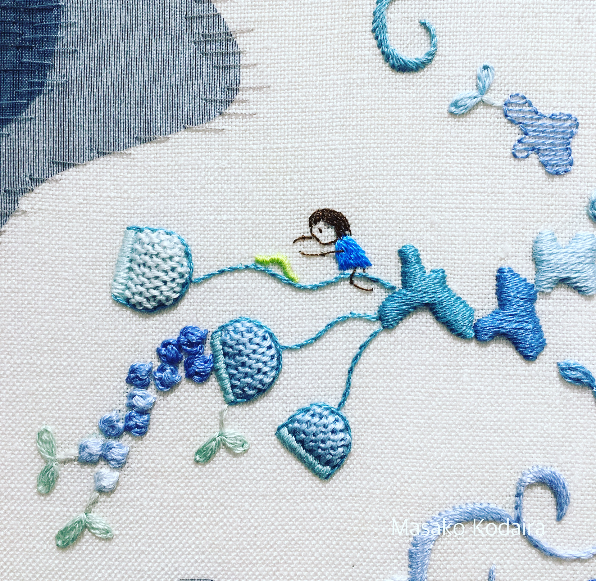 神戸でスイス人のシェリーさんに教わったという母の刺しゅうが大好きで、オトナになったら刺しゅうをしようと思っていました。会社勤めとのかねあいで、ライラックの会、おんどりアカデミー、日本手芸普及協会と教わる場所はかわりましたが、ずっと刺しゅうを続けてきました。