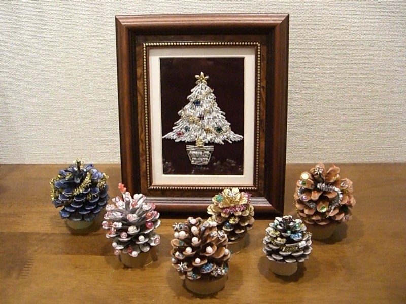 まつぼっくりのツリーは、家族で科学技術館でつくったものです。