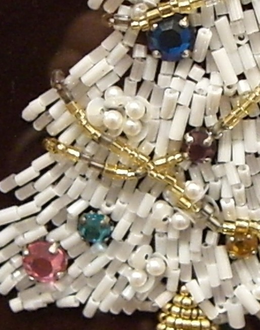 白いクリスマスツリーは何年か前に刺しゅう関係の知り合いにキットをいただいてビーズ刺繍で作ったものです。