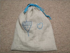 夏休みの宿題で、娘がコマを入れる袋を作りました。