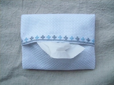 織りを割らないように針はクロス用の先が丸いものを使いました。