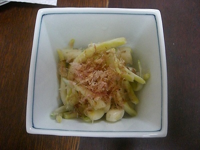 塩もみを買ってきてくれたので、ちょっと洗ってかつおぶしをかけて。