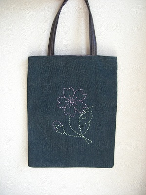 ワークショップでは花ふきんを作ったのですが、その図案でプチバックを作ってみました。(画像クリックで大きくなります。)