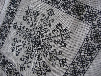 刺し子の本を何冊か目をとおしていて、ブラックワークと刺し子にとても似ている図案があることを発見しました。今度、刺してみたいと思います。