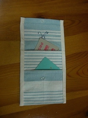 きれいな水色の素敵な布。捨てるのかわいそうだなぁ、何かできないかしら、、といじりまわしていて、娘がpasmo入れを欲しがっていたのを思い出し、カードケースを作りました。(^_^)