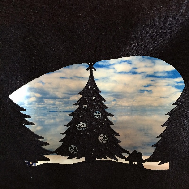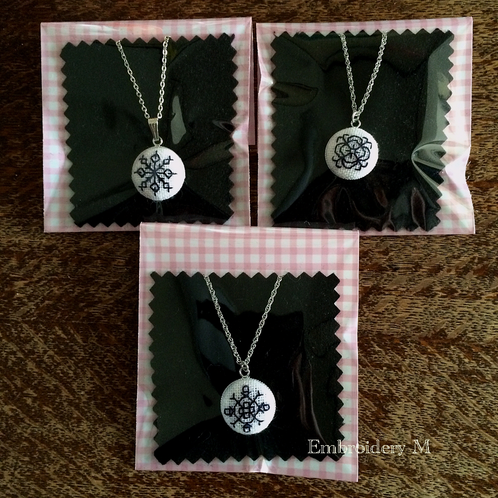 前日夜に家族が寝てから作りました。ブラックワークの小さなモチーフひとつ。