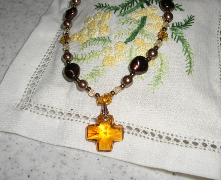 黒とクリスタルも作製中です。ただ、バゲット型のパールがないのでチェーン部分(というのか?)がシンプルです。これがまたいいかも。(^_^/