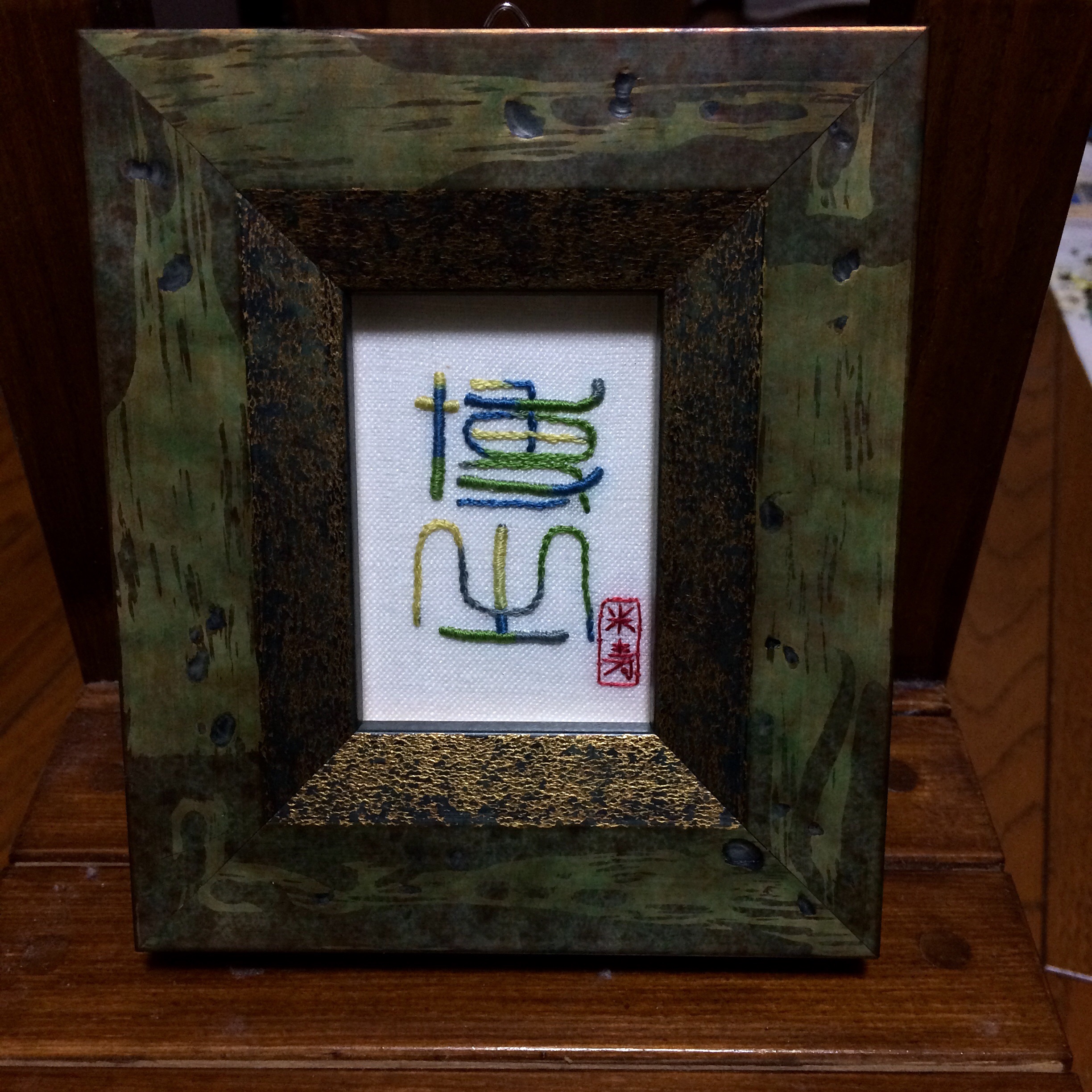 ご無沙汰していますが、いろいろチクチクしています。これは、昨日刺したお祝いの額。喜んでくれるといいな(*^^*)