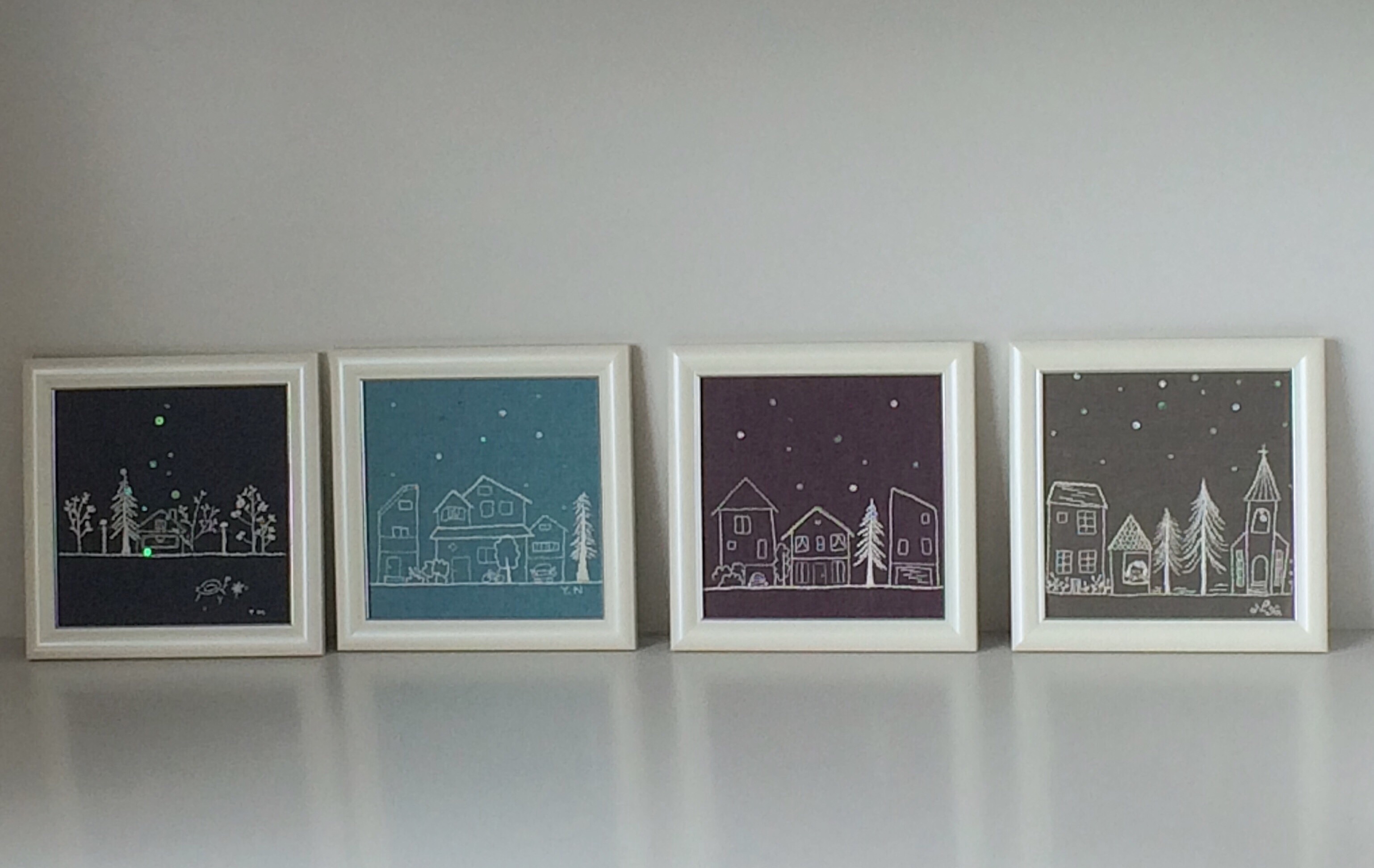 昨年秋に夜景にはまって刺したものを額装することにしました。