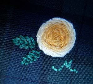 葉を25番糸4本どりでフライステッチにしたら、ごつすぎましたね。^_^;