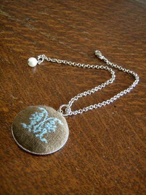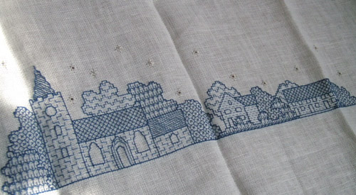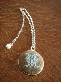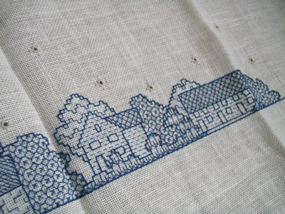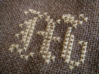 生地が平織りで縦横比が同じそうにみえたので(測らなきゃ~。^^;)クロスステッチしました。