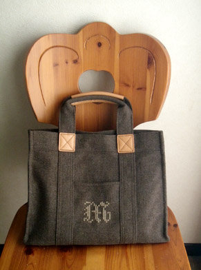 ざっくりしたツイードのバッグにウール糸でクロスステッチです。