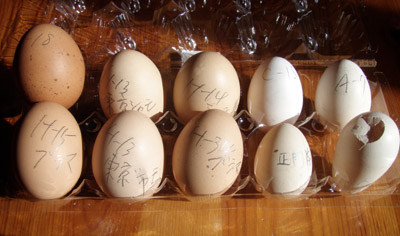 会計のおじさんに卵が不揃いである理由を聞くと、なんと!親鳥の種類が違う!!