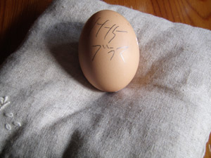 メモしたい~と言うと、「卵の殻に鉛筆で書いてあります。」って。(^_^/